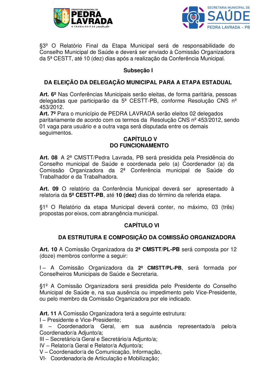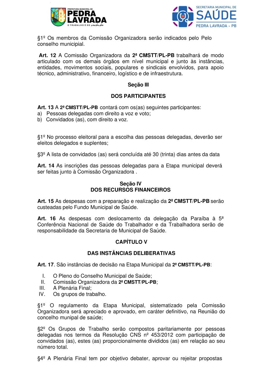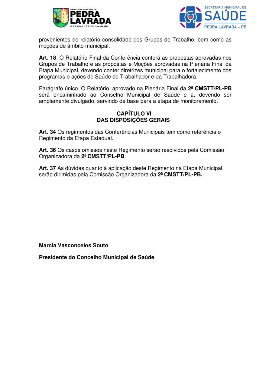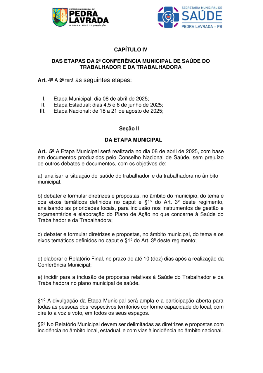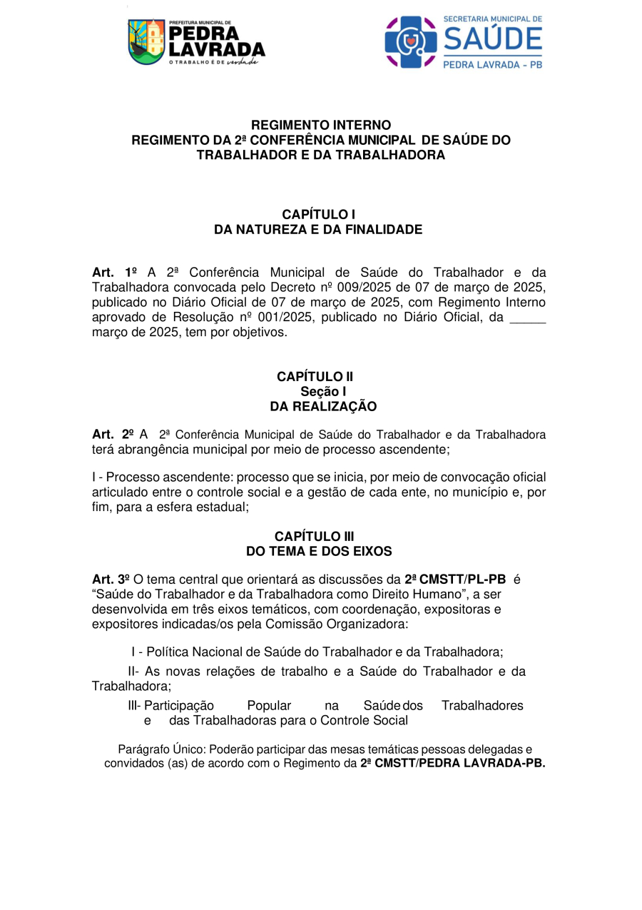 REGIMENTO INTERNO – REGIMENTO DA 2ª CONFERÊNCIA MUNICIPAL DE SAÚDE DO TRABALHADOR E DA TRABALHADORA