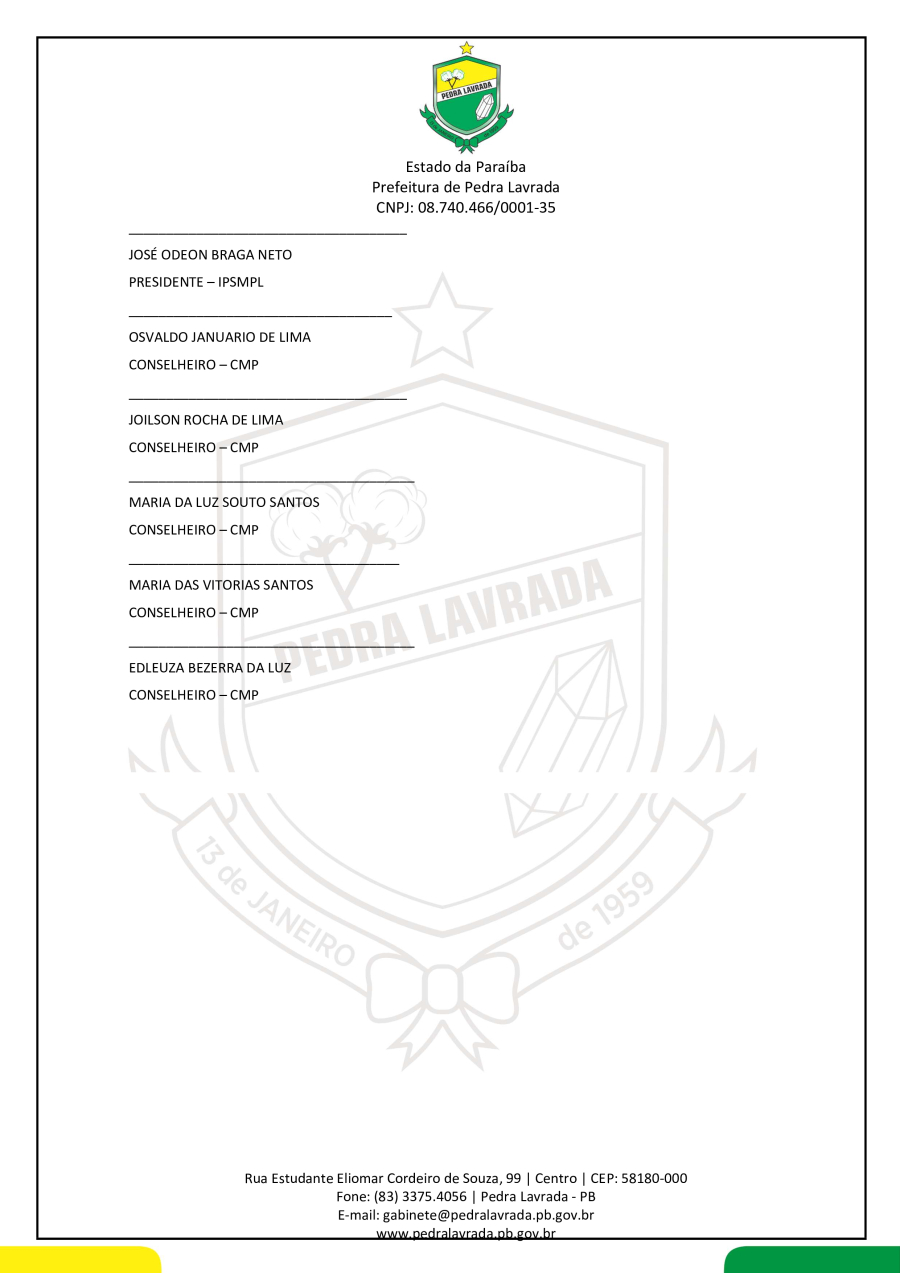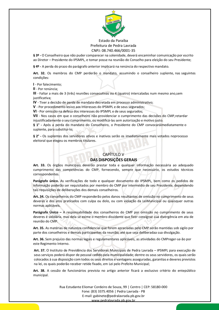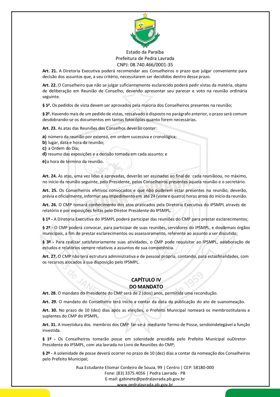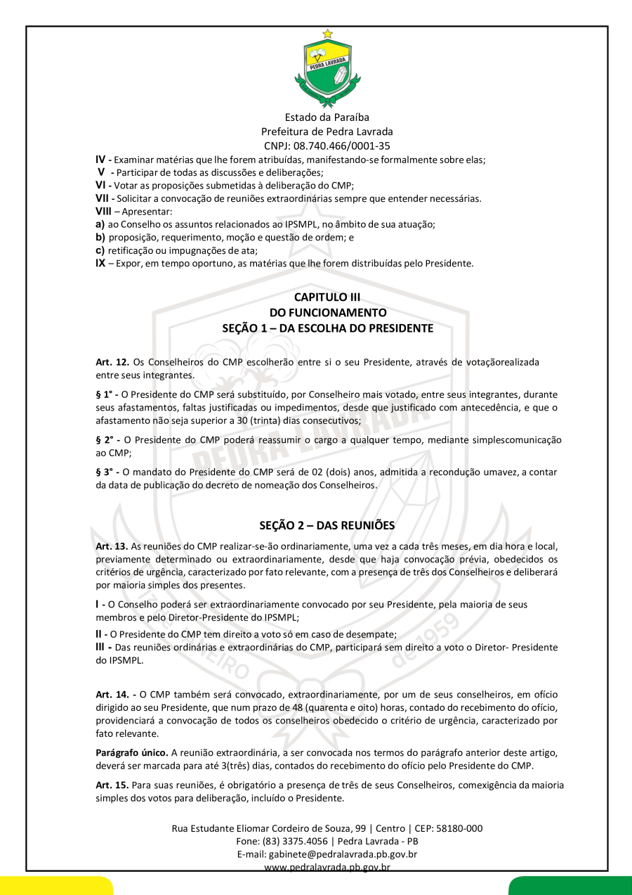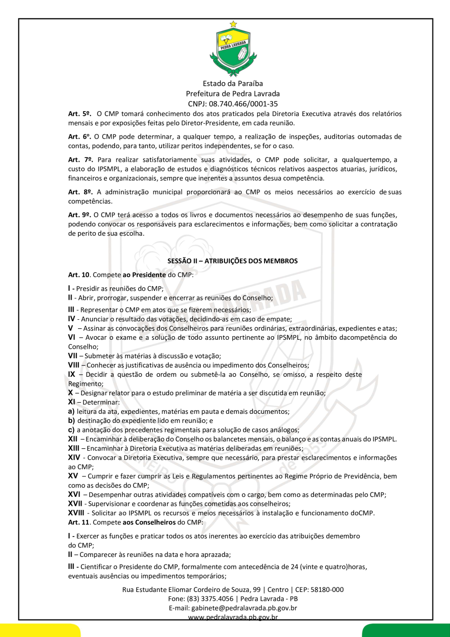 LEI N° 0406/2025 – DISPÕE SOBRE APROVAÇÃO DO REGIMENTO INTERNO DO INSTITUTO DE PREVIDÊNCIA DOS SERVIDORES MUNICIPAIS DE PEDRA LAVRADA