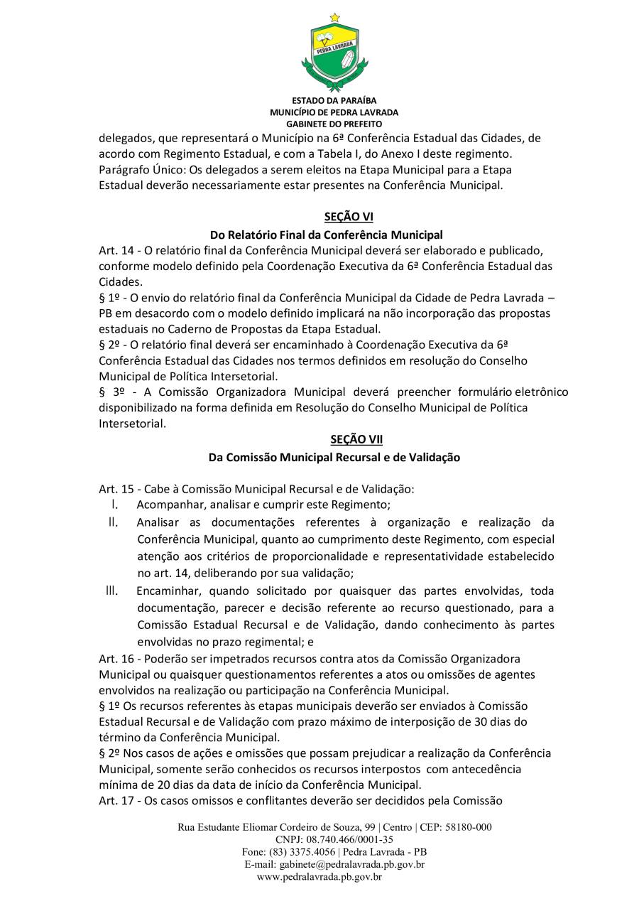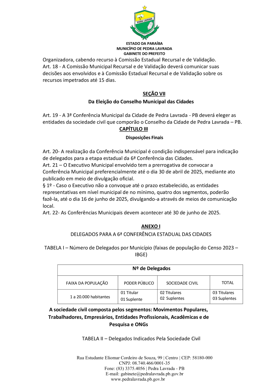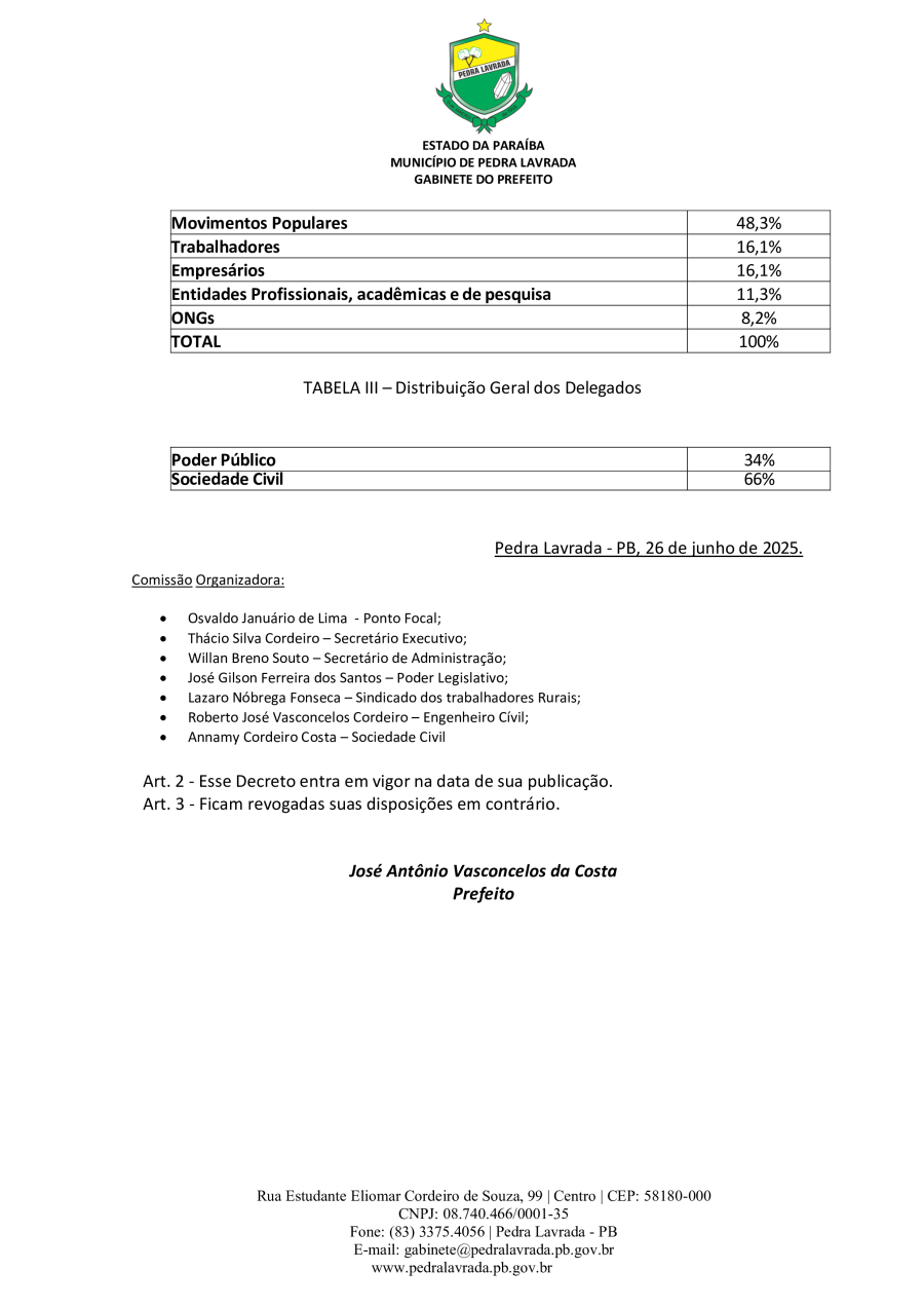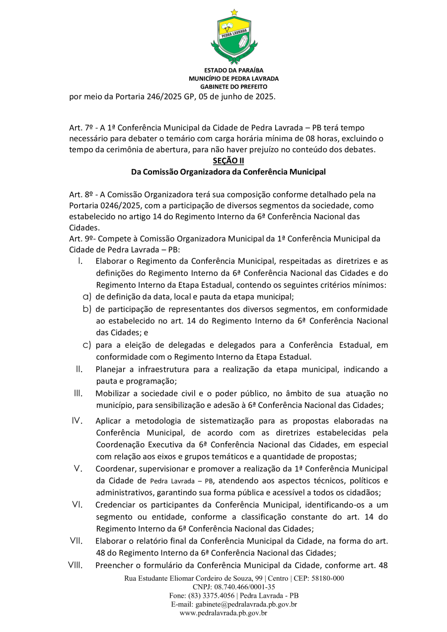 DECRETO N° 0042/2025 – ESTABELECE O REGIMENTO INTERNO DA 1ª CONFERÊNCIA MUNICIPAL DA CIDADE DE PEDRA LAVRADA-PB ESTADO DA PARAÍBA