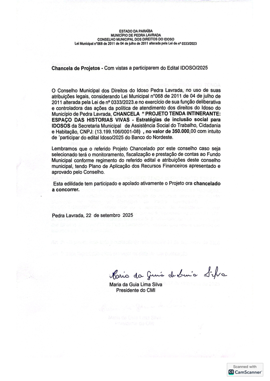CHANCELA DE PROJETO – COM VISTAS A PARTICIPAREM DO EDITAL IDOSO/2025