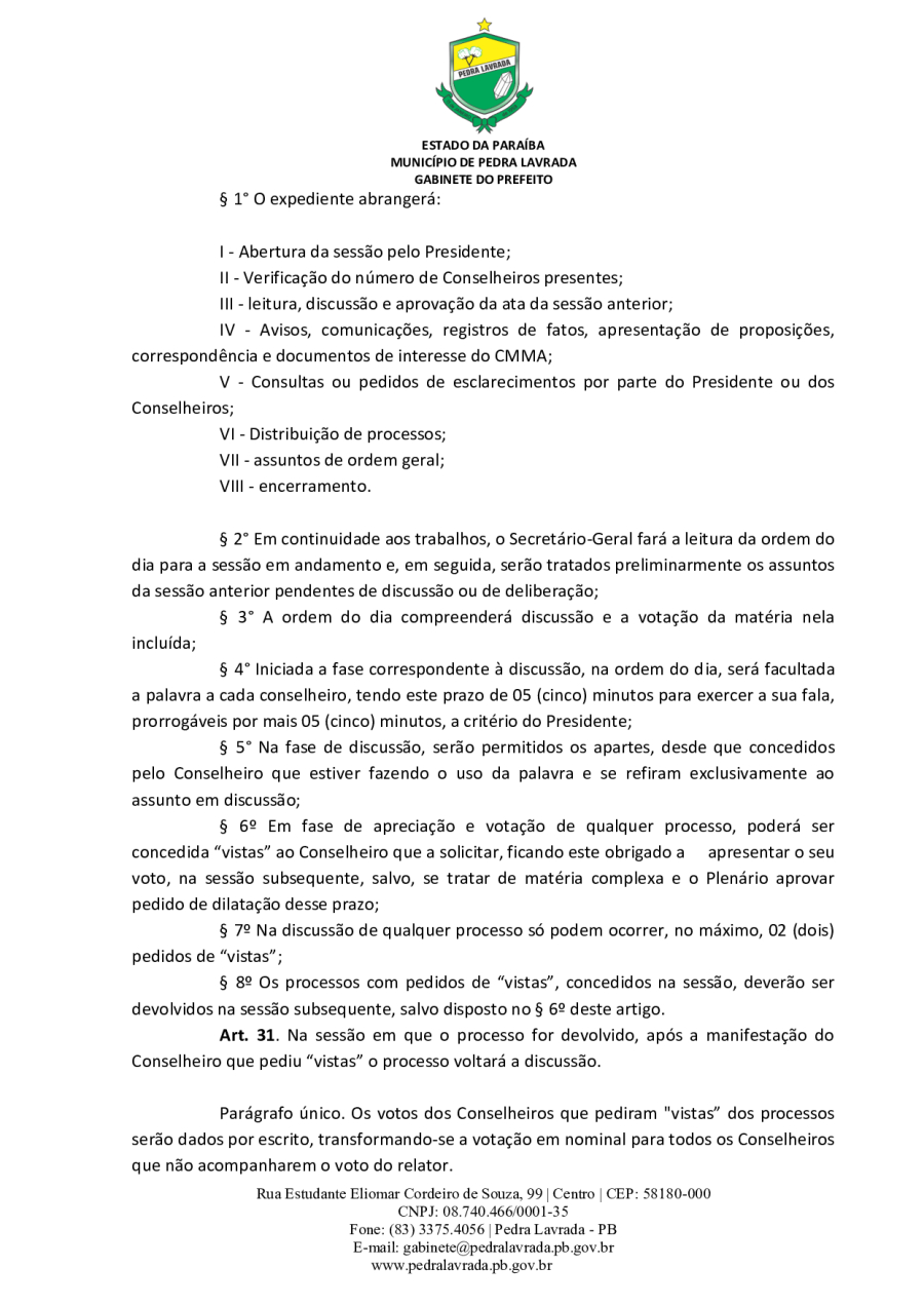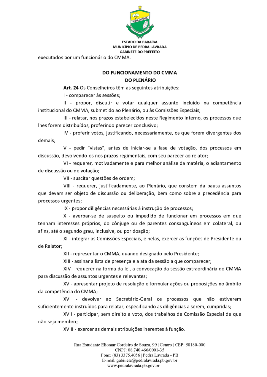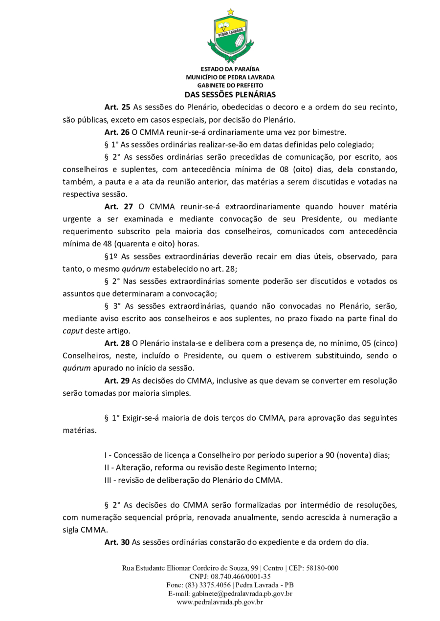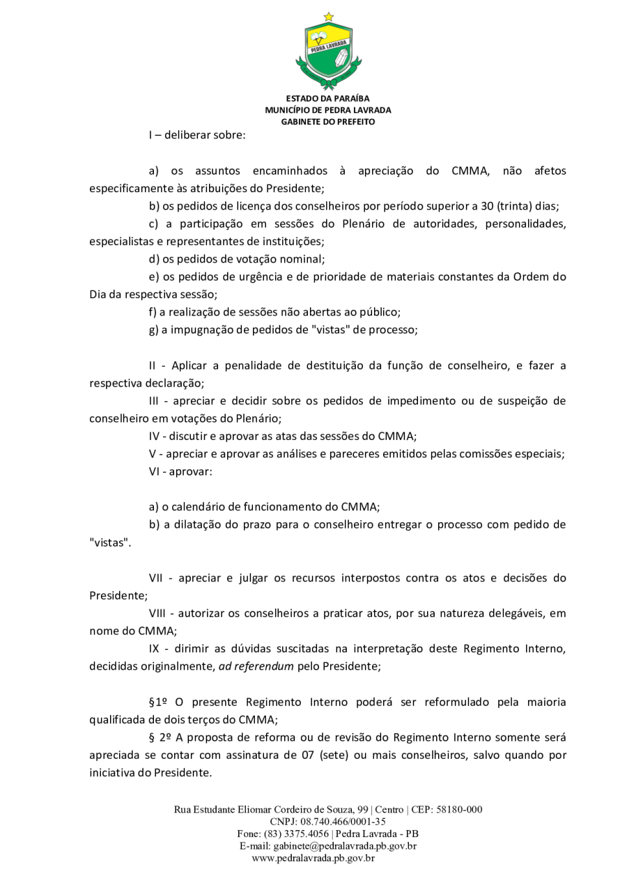 DECRETO N° 0082/2025 – APROVA O REGIMENTO INTERNO DO CONSELHO MUNICIPAL DO MEIO AMBIENTE – CMMA