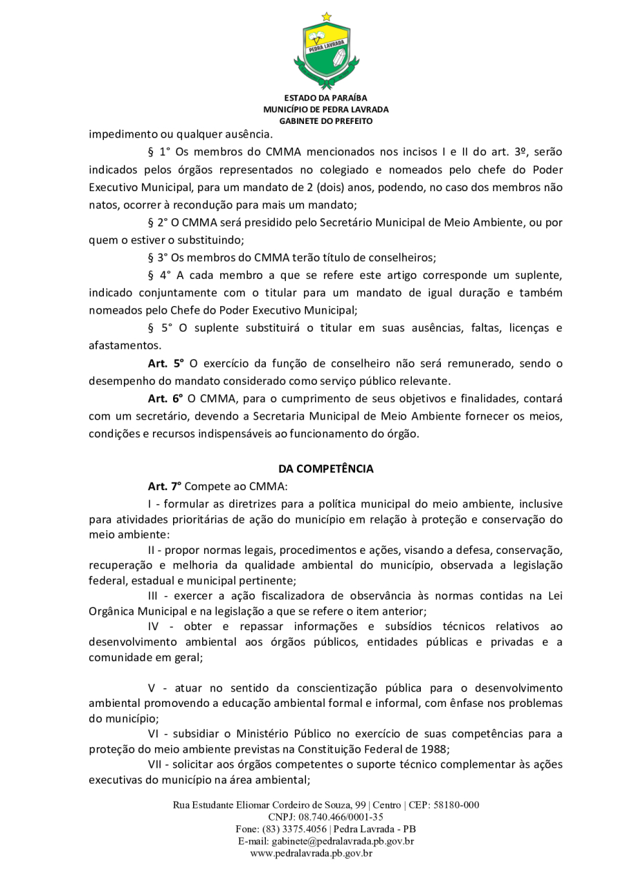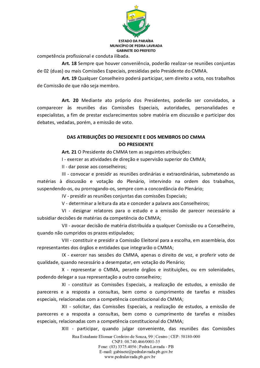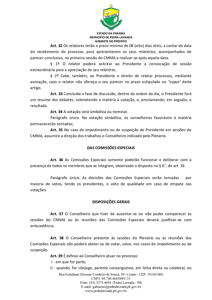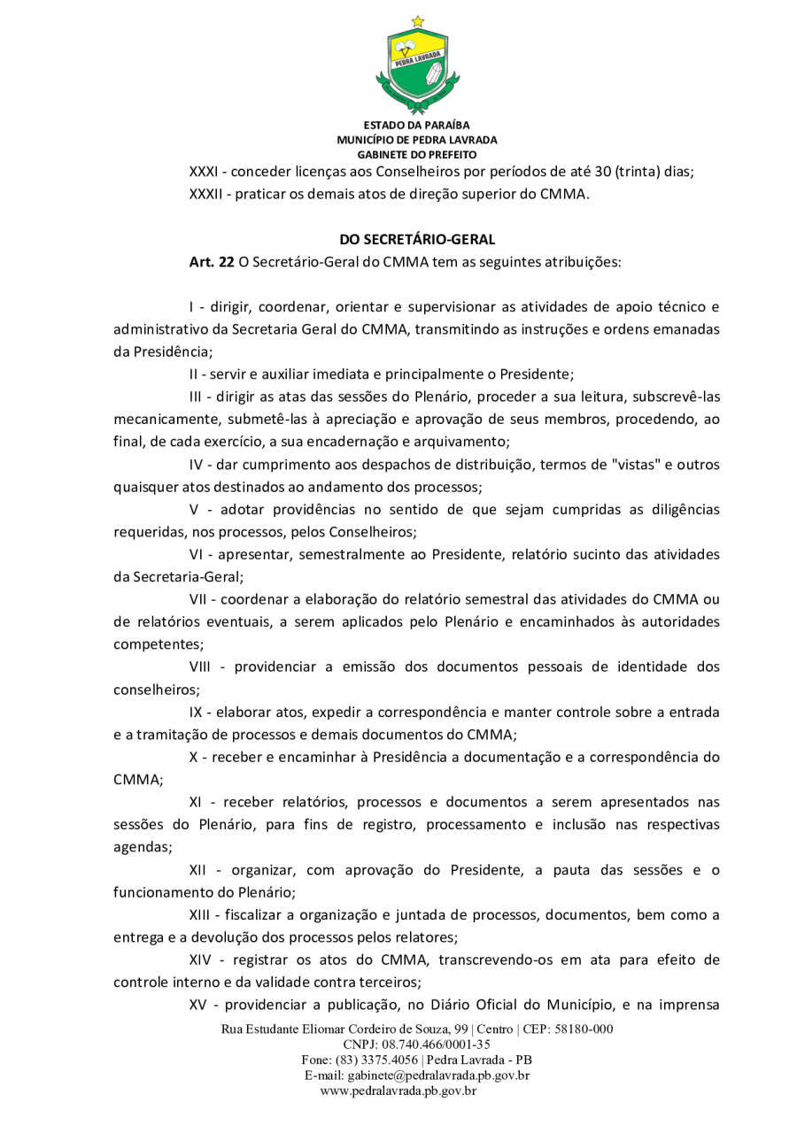DECRETO N° 0082/2025 – APROVA O REGIMENTO INTERNO DO CONSELHO MUNICIPAL DO MEIO AMBIENTE – CMMA