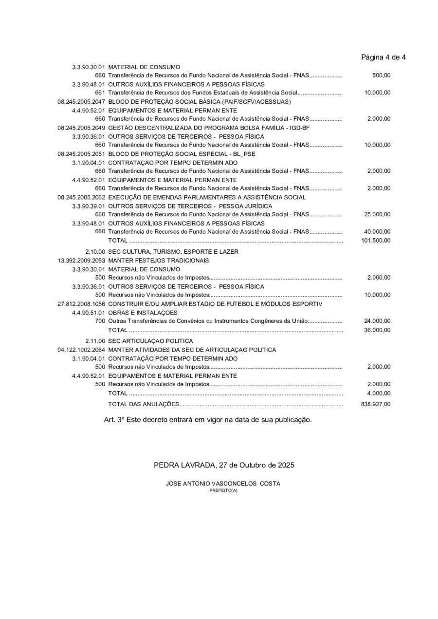 DECRETO N° 0091/2025 – ABRE CRÉDITO SUPLEMENTAR PARA O FIM QUE ESPECIFICA