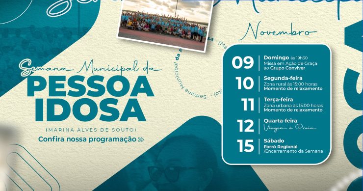 A programação contará com momentos de convivência, espiritualidade, lazer e atividades voltadas ao cuidado com a saúde emocional. As ações mantêm o compromisso da gestão municipal em promover políticas públicas que garantam dignidade e qualidade de vida às pessoas idosas.
